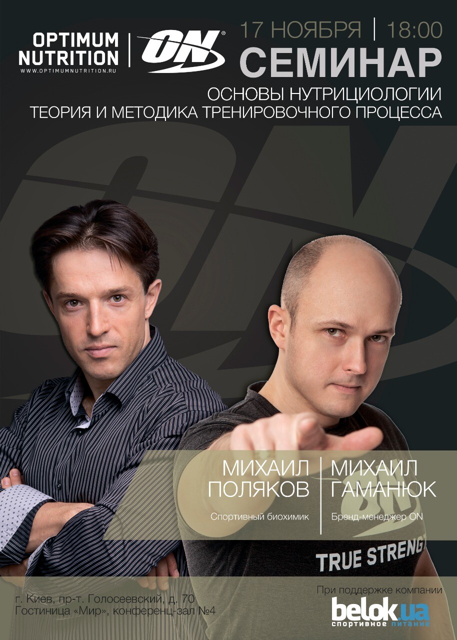 Гаманюка Михаила (нутрициолога компании Optimum Nutrition) и Полякова Михаила (спортивного биохимика компании Belok.ua)